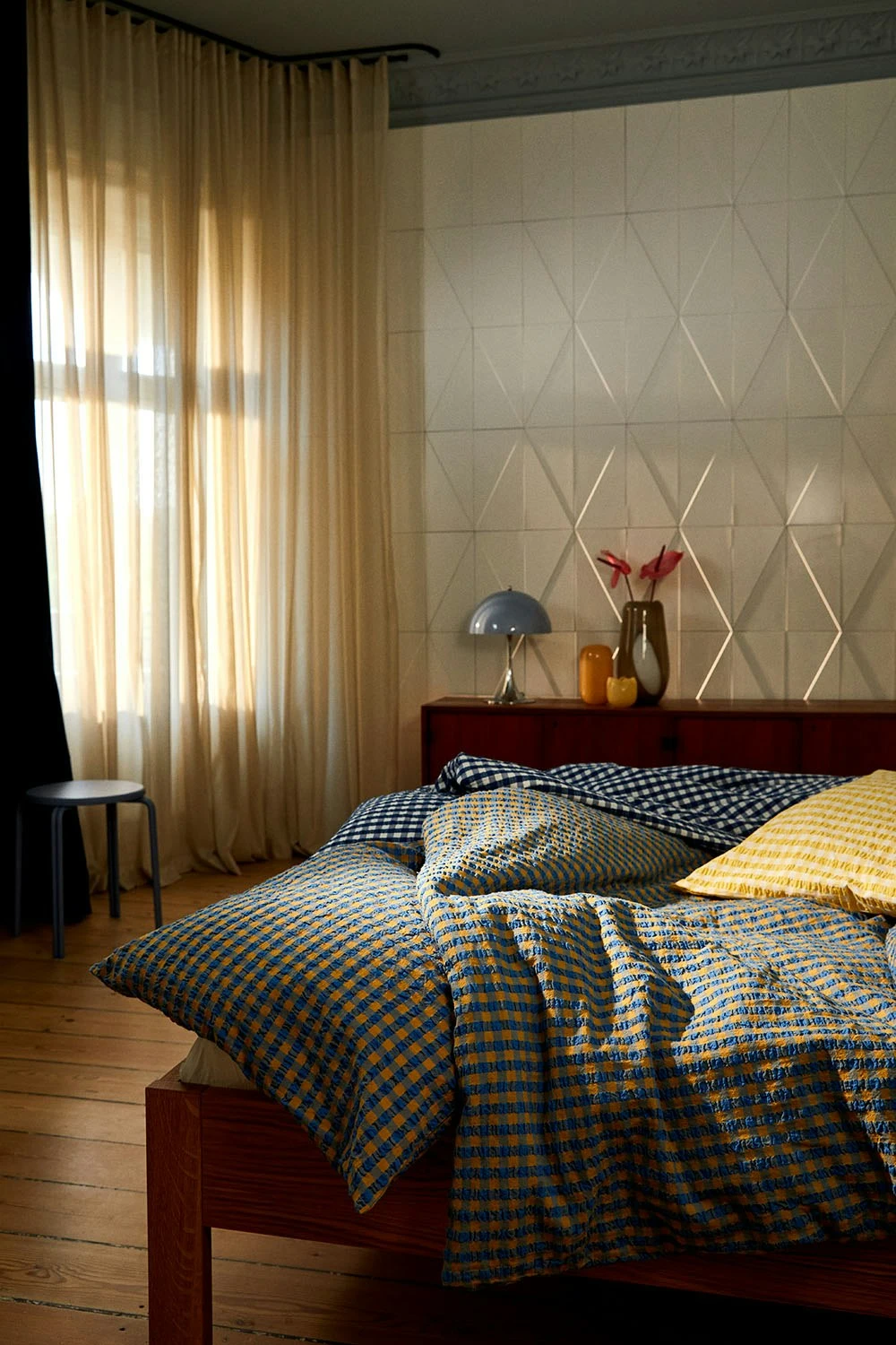 Juna Bæk & Bølge Pussilakanasetti 140×200 + 60×63 Cm, Sininen/Ochre