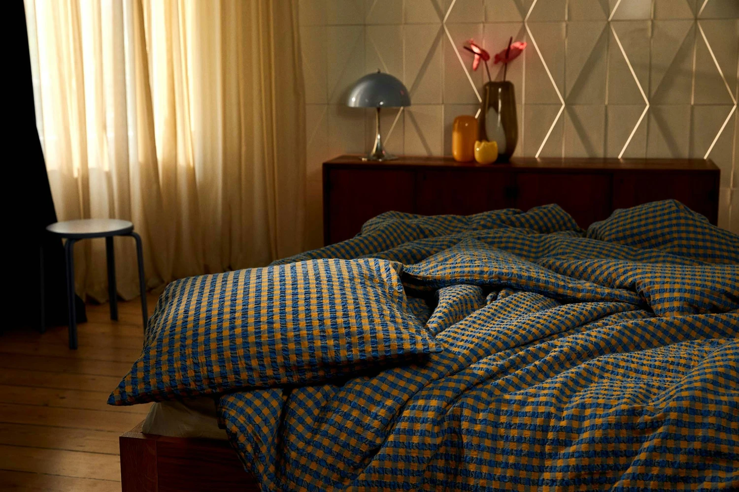 Juna Bæk & Bølge Pussilakanasetti 140×220 + 50×70 Cm, Sininen/Ochre