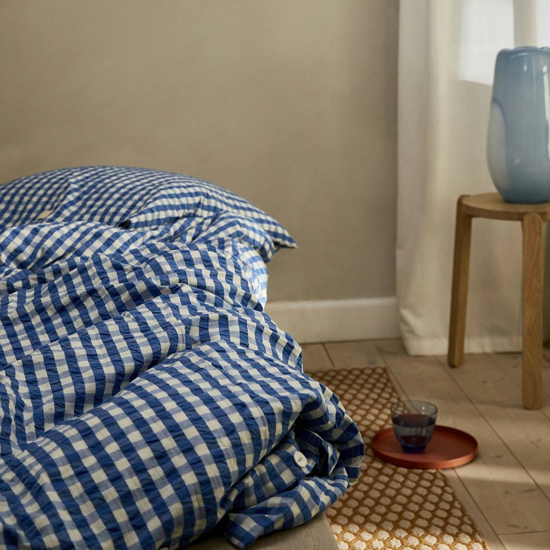 Juna Bæk & Bølge Pussilakanasetti 140×200 + 60×63 Cm, Sininen/Ochre
