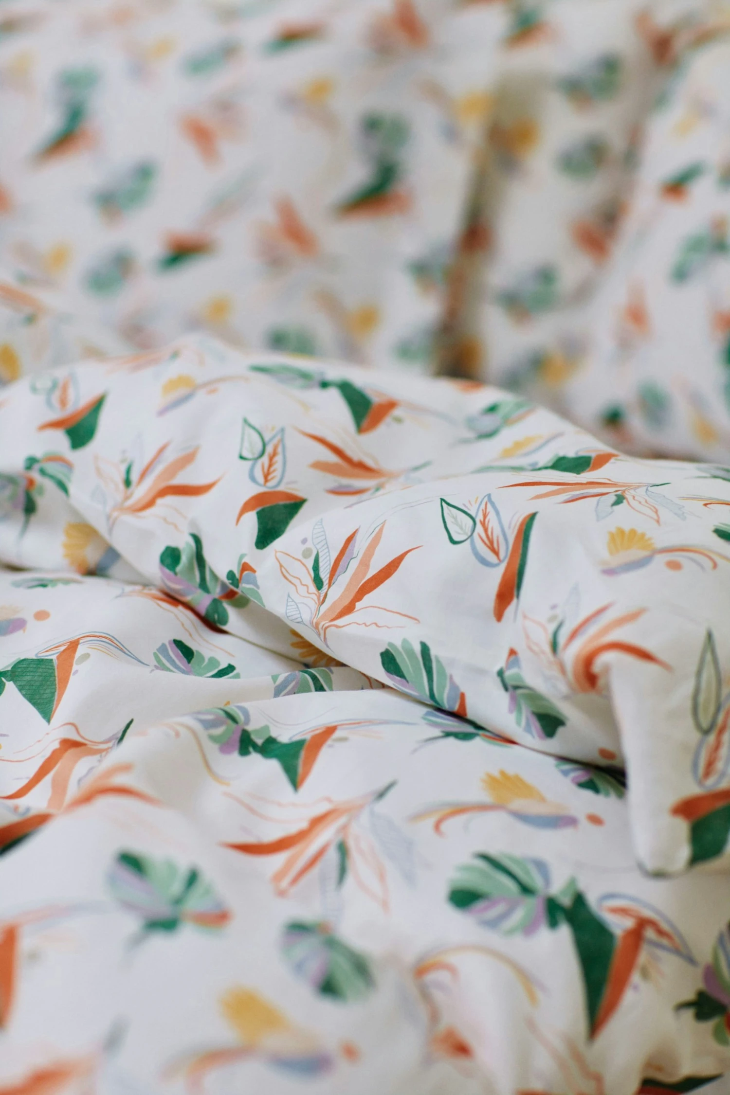Tyynynpäällisessä Lexington-tuotemerkiltä on ihana muotoilu puuvillasatiinista värikkäillä linnuilla, kasveilla ja pehmeällä tuntumalla. Lisää luksustuntua makuuhuoneeseesi samaan sarjaan kuuluvan pussilakanan avulla.