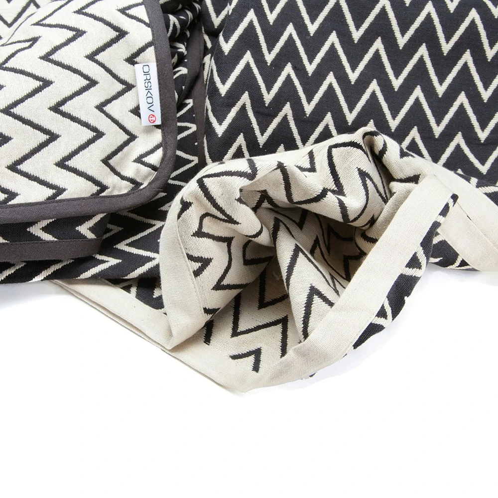 Zigzag bedspread from Danish Ørskov. The bedspread has a black and white zigzag pattern where one side has a white bottom and the other side a black one. Fits both the bed, the sofa and the patio. Match with pillows in the same series. Available in two sizes.